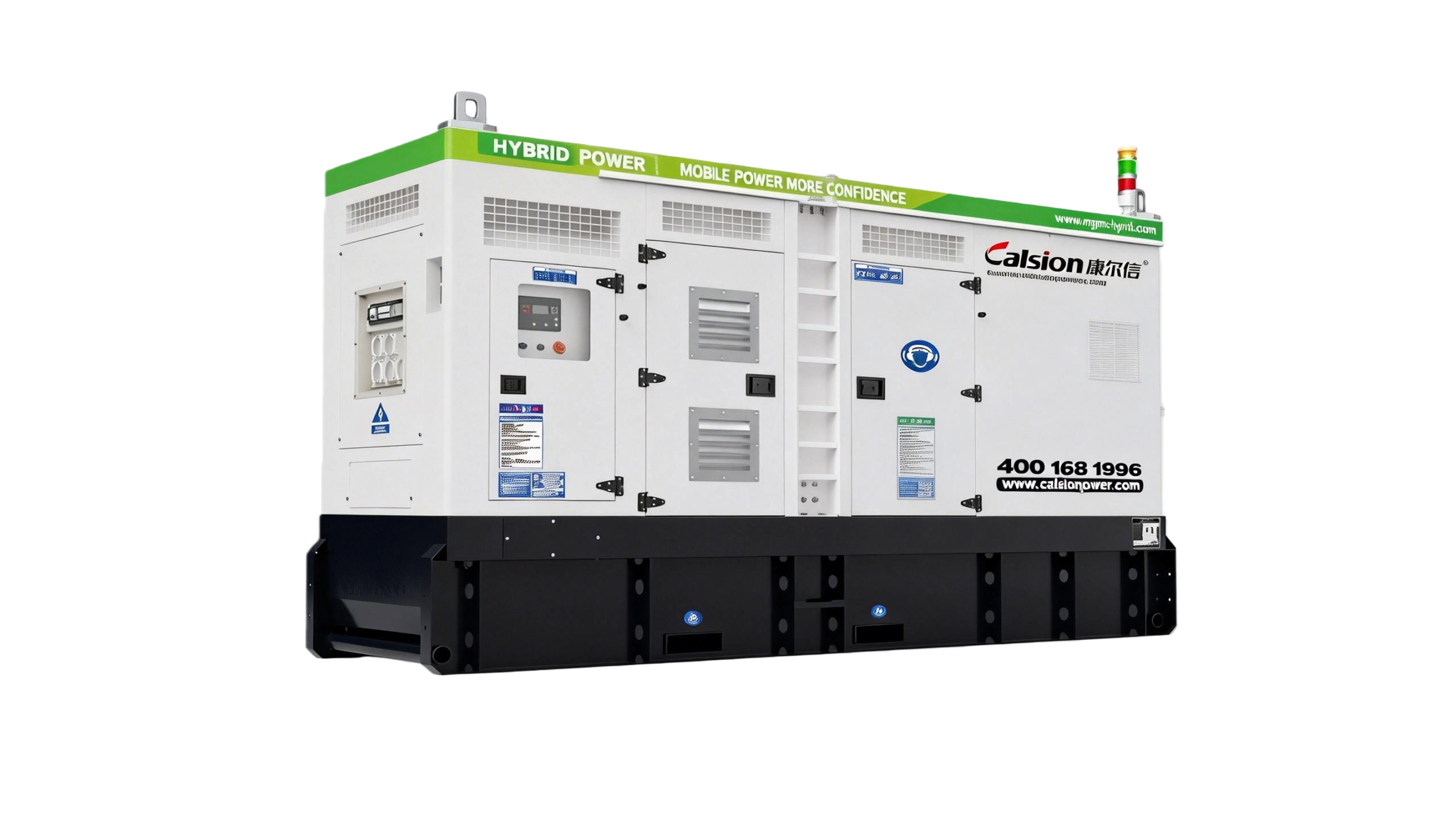 康尔信新型的混合能源发电站,柴油发电机组、储能蓄电池组、太阳能光伏、风能集成一个完整的系统,主要用于降低排放,减少对主电源的依赖,降低用电成本。支持独立的光伏阵列接入,柴油发电机组与储能系统之间无缝切换,具有离网和并网运行功能。